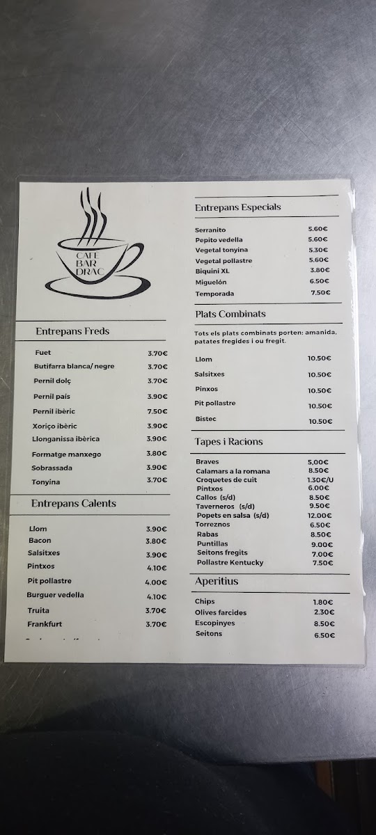 Cafè Bar Drac Menu